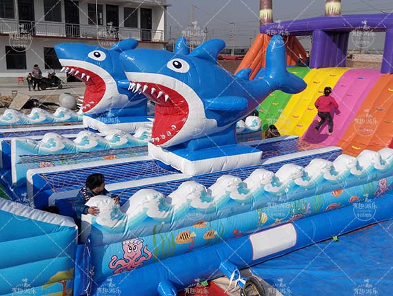 水上大沖關場地要求:水上大沖關項目要求建設在可以游泳的水域