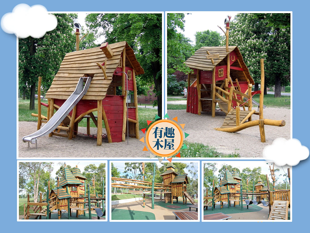 有趣樹屋項(xiàng)目通過攀爬梯子,你可以進(jìn)入樹屋,尤其是孩子們覺得有必要從上面往下看,感覺自己是空中較高的,可以逃過成人的直接接觸,使他們的自信心更加的堅(jiān)定。在配置些滑梯、秋千、繩網(wǎng)、滑竿等有趣的項(xiàng)目使的樹屋的樂趣倍增。