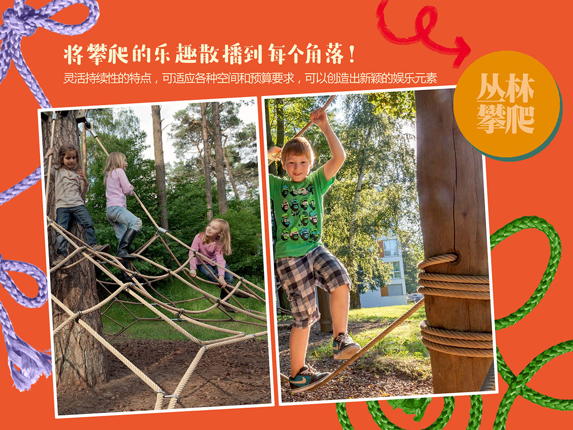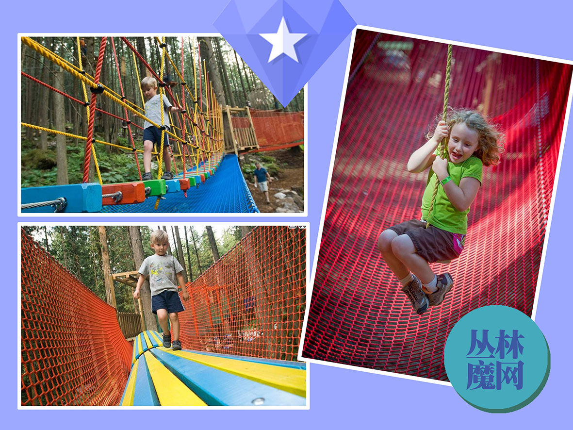 叢林魔網(wǎng)(叢林繩網(wǎng))可以成為所有年齡段人群夢(mèng)幻般樂趣的來(lái)源,可以全家一同享受的無(wú)動(dòng)力游樂項(xiàng)目。叢林繩網(wǎng)被設(shè)計(jì)為可供大多數(shù)人使用,但需要適當(dāng)程度的體力支出和精神挑戰(zhàn)。