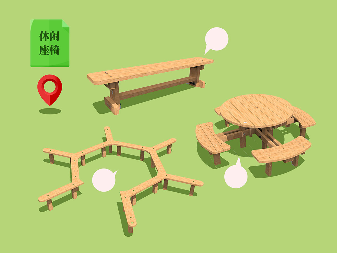 休閑座椅可以讓一家人享受更多的戶外休閑時(shí)光,配置專業(yè)的戶外休閑座椅是個(gè)不錯(cuò)的選擇。這些休閑座椅主要借助于自然資源進(jìn)行設(shè)計(jì)和搭建,與周邊環(huán)境融為一體。野餐桌椅采用實(shí)木板加工而成,保證了生態(tài)自然。